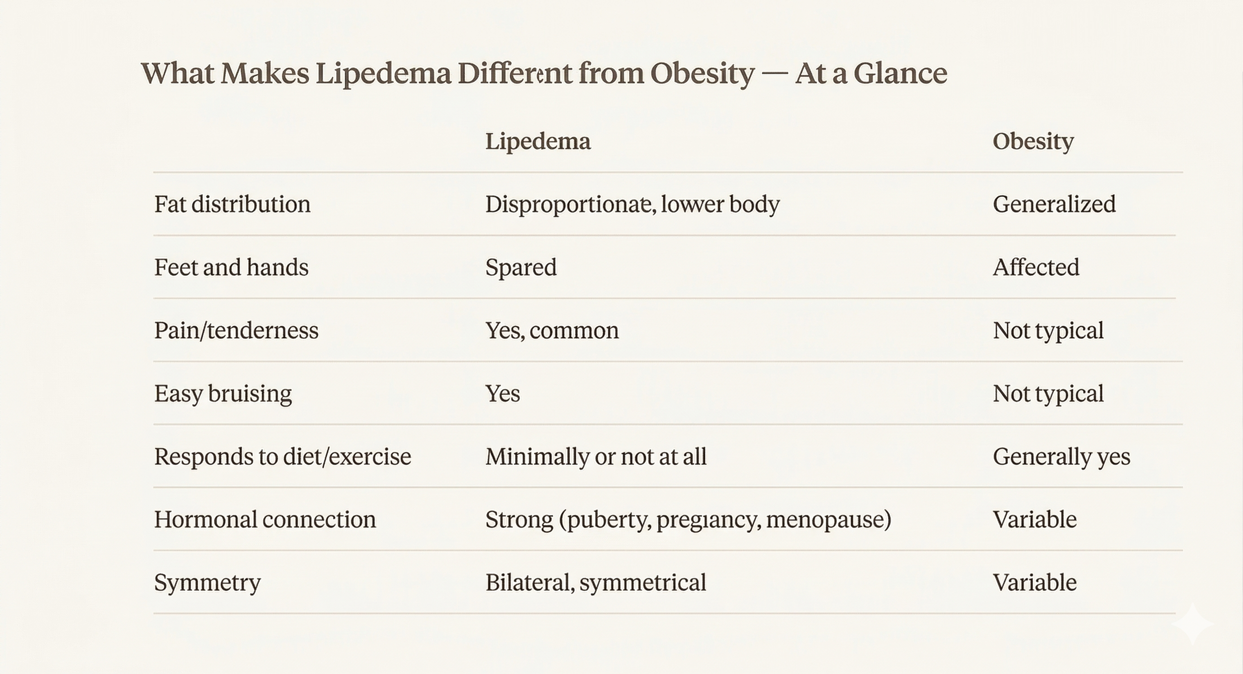 Here's what makes lipedema unique and what makes it so frequently missed: